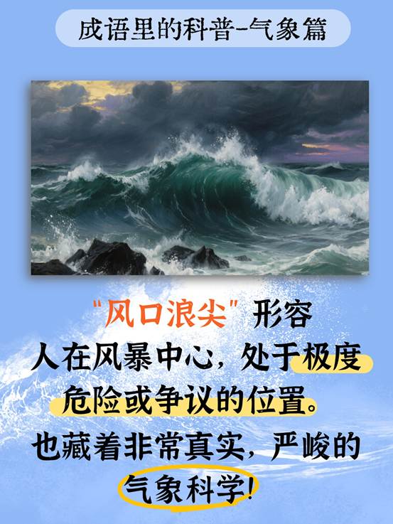 本文揭示了成语 “风口浪尖” 背后的气象科学原理。该成语不仅比喻危险或争议境地,其字面含义对应海洋中风力最强、海浪最猛烈的高危区域。风通过风速、风程和持续时间推动海水形成波浪,浪尖即波峰,在强风下尤为凶险,台风时更是生死地带,文章展现了成语与风浪力学的紧密关联,具备科普气象知识与解析文化用语的核心价值。