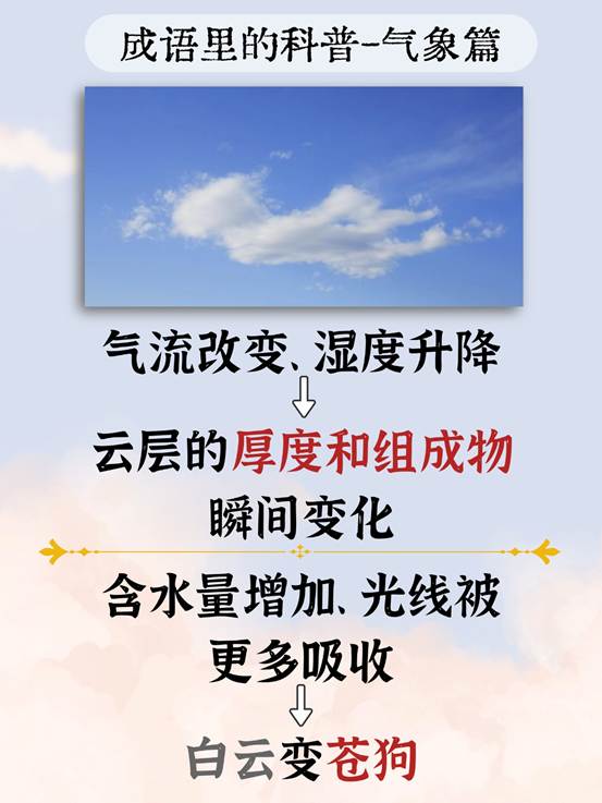 所以,当你下次看到天边的云卷云舒,不妨用“白云苍狗”来记录那一刻——它不仅是一句诗意的成语,更是一场肉眼可见的气象奇观。就像天气一样,生活中也有很多瞬间在不经意间就改变了模样,而这份无常,正是它的美。
