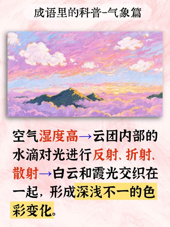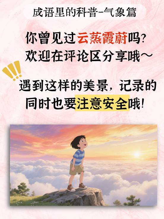 本文揭示了成语 “云蒸霞蔚” 背后的气象科学原理。该成语描绘云气蒸腾、霞光绚烂的景象,其形成依赖高湿度、低角度光线、小风及地形抬升等条件,是水汽与阳光共同作用的结果,文章具备科普气象知识、解析文化用语的核心价值。