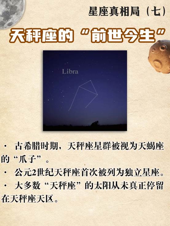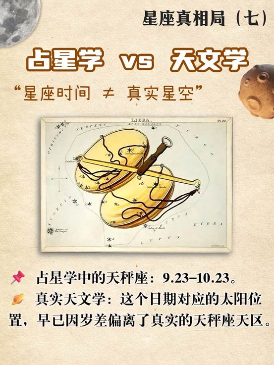 如今,占星学中的天秤座日期(9.23-10.23)对应的太阳位置,实际在天文学上已进入室女座(Virgo)与天蝎座之间。换句话说,大多数“天秤座”的太阳从未真正停留在天秤座天区。