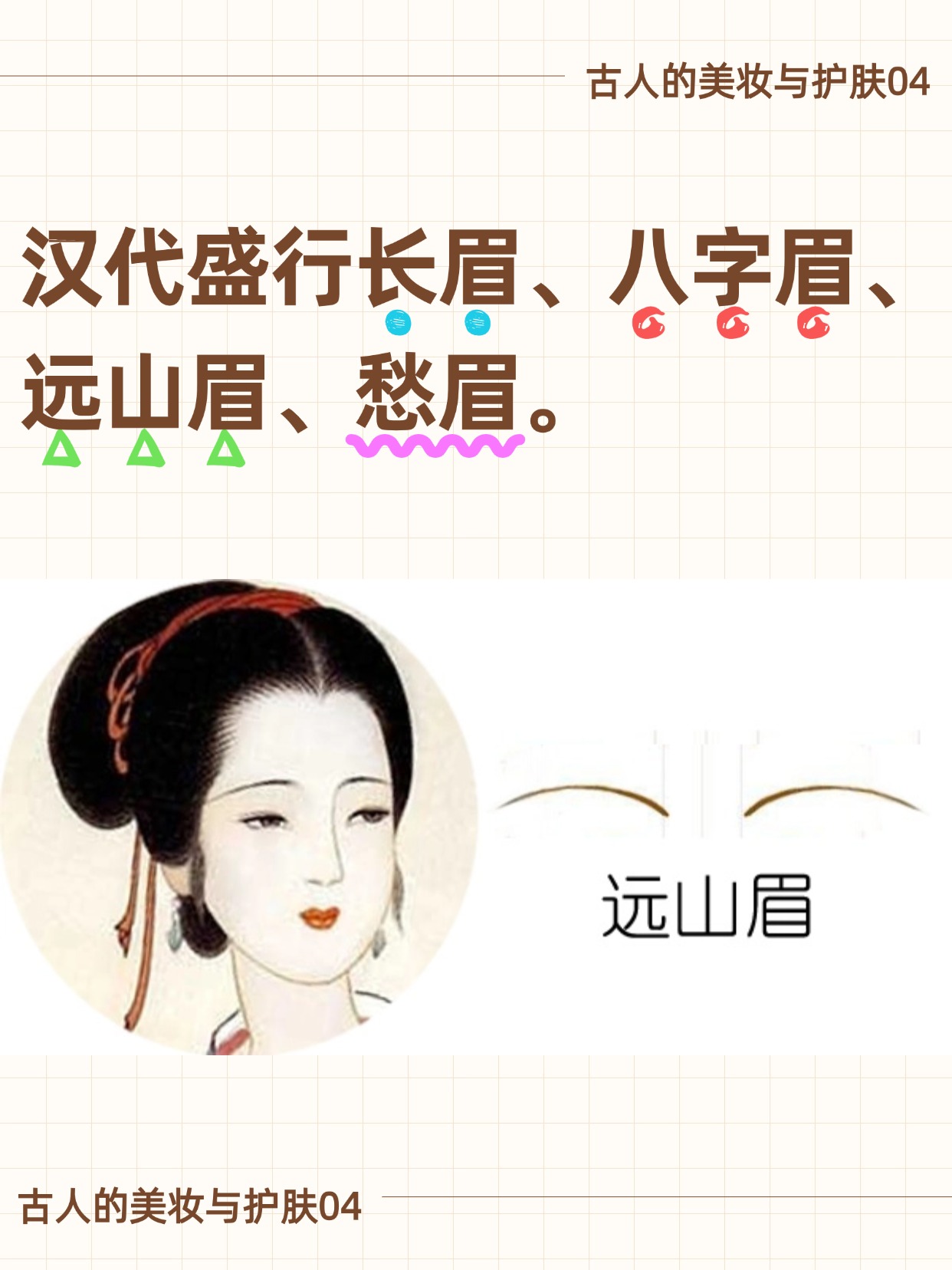 · 远山眉:淡雅如远山,赵合德开创并引领风潮;