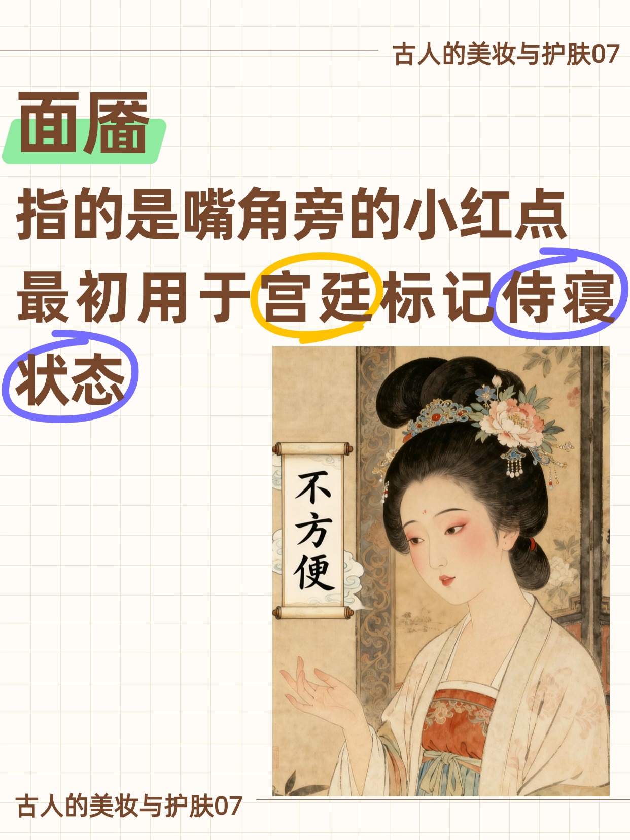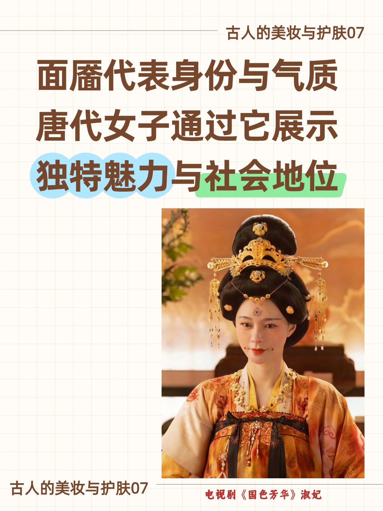 面靥不仅是唐代女子妆容中的一部分,更是一个象征身份与美学的文化符号。从宫廷到民间,面靥的演变展示了女性自信与美的追求,同时也承载了时代的审美与文化内涵。