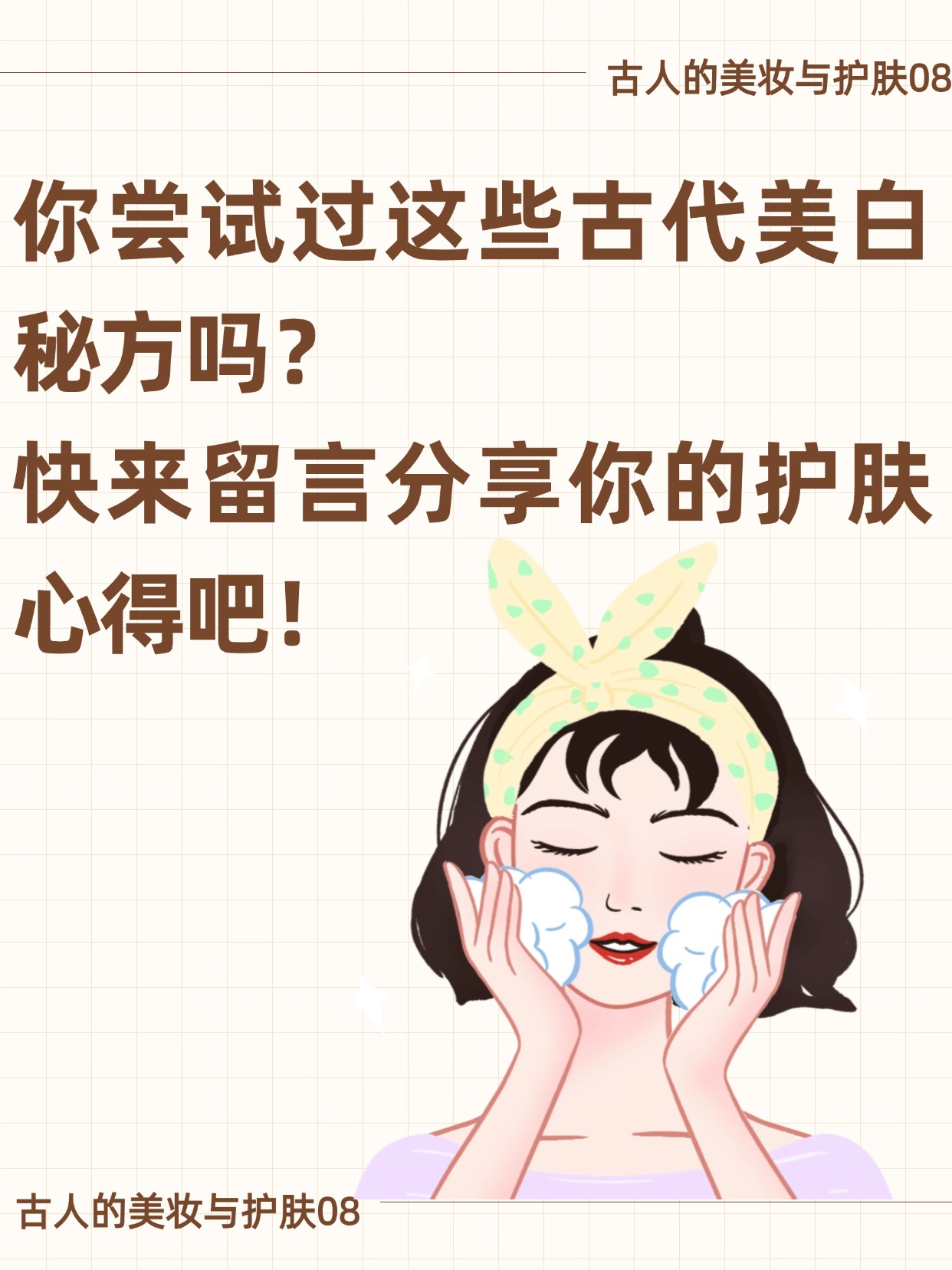 这些古代的美白秘方,虽然不一定能立竿见影,但它们的天然成分和悠久的历史背后,蕴藏着很多有趣的护肤智慧!你有没有尝试过这些传统的美容方法?还是有更靠谱的现代护肤法宝分享给大家呢?快来留言告诉我,你的护肤秘诀吧!