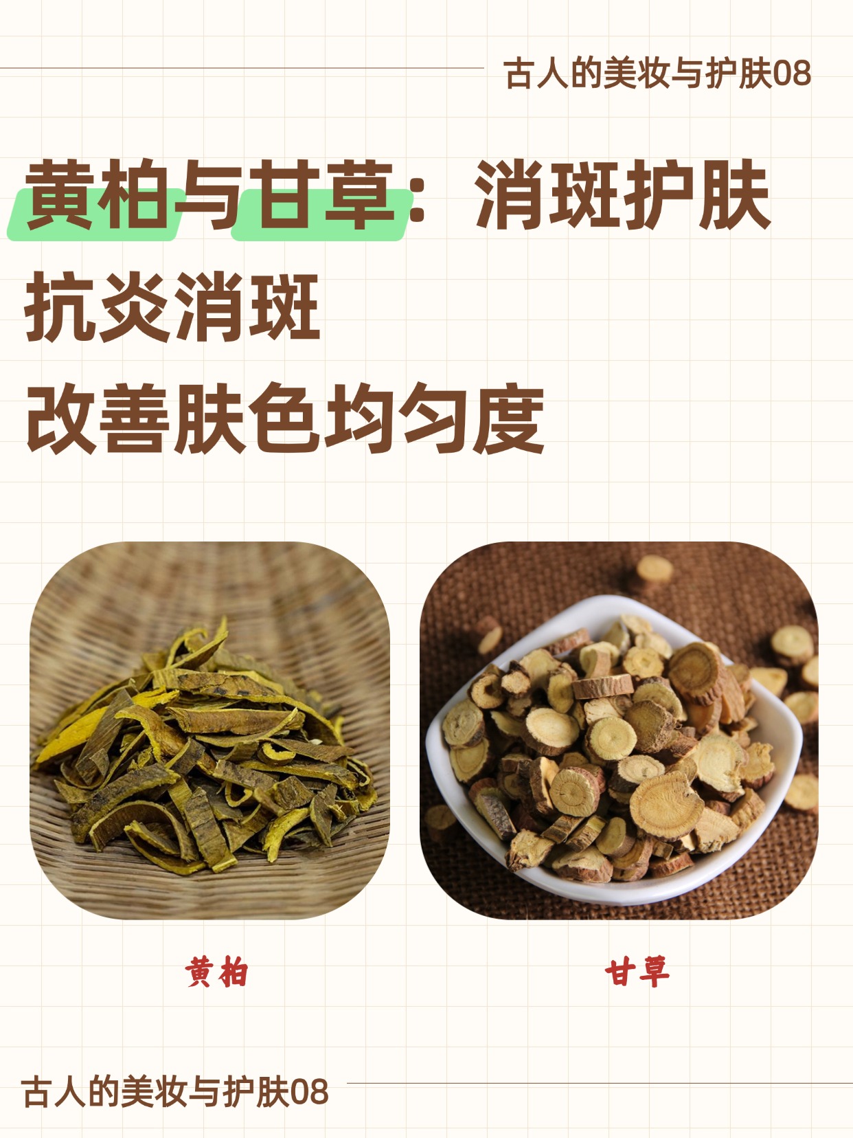 4. 黄柏与甘草:抗炎消斑,温和护肤