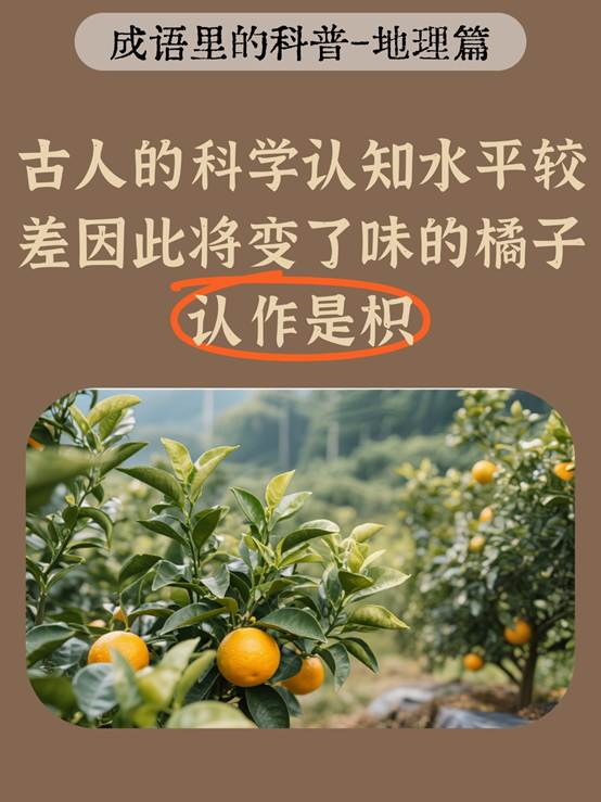 “橘生淮南则为橘,生于淮北则为枳”,这个成语比喻环境能改变人的本性。其背后透露着古人超准的农业地理观察,却也表现出他们在科学认知方面的局限