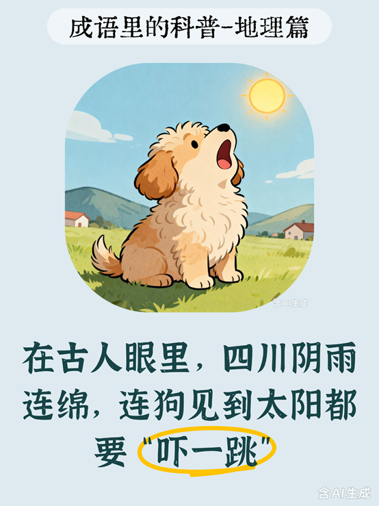 文章通过介绍 “蜀犬吠日” 的成语出处与柳宗元的讽刺本意,解码四川盆地封闭地形导致湿气难散、阴雨多雾、日照稀少的地理特征,解释了古人 “日出犬吠” 的想象来源,表现了地理环境对地域气候与人文认知的影响,体现了地理知识与人文典故结合的科普价值,以及视野局限易致少见多怪的现实启示。