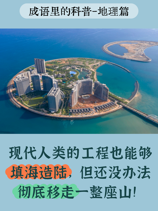 【移山填海】→【地壳运动+火山造陆+泥沙淤积+人类工程】→【填海尚可完成,移山确实太难】