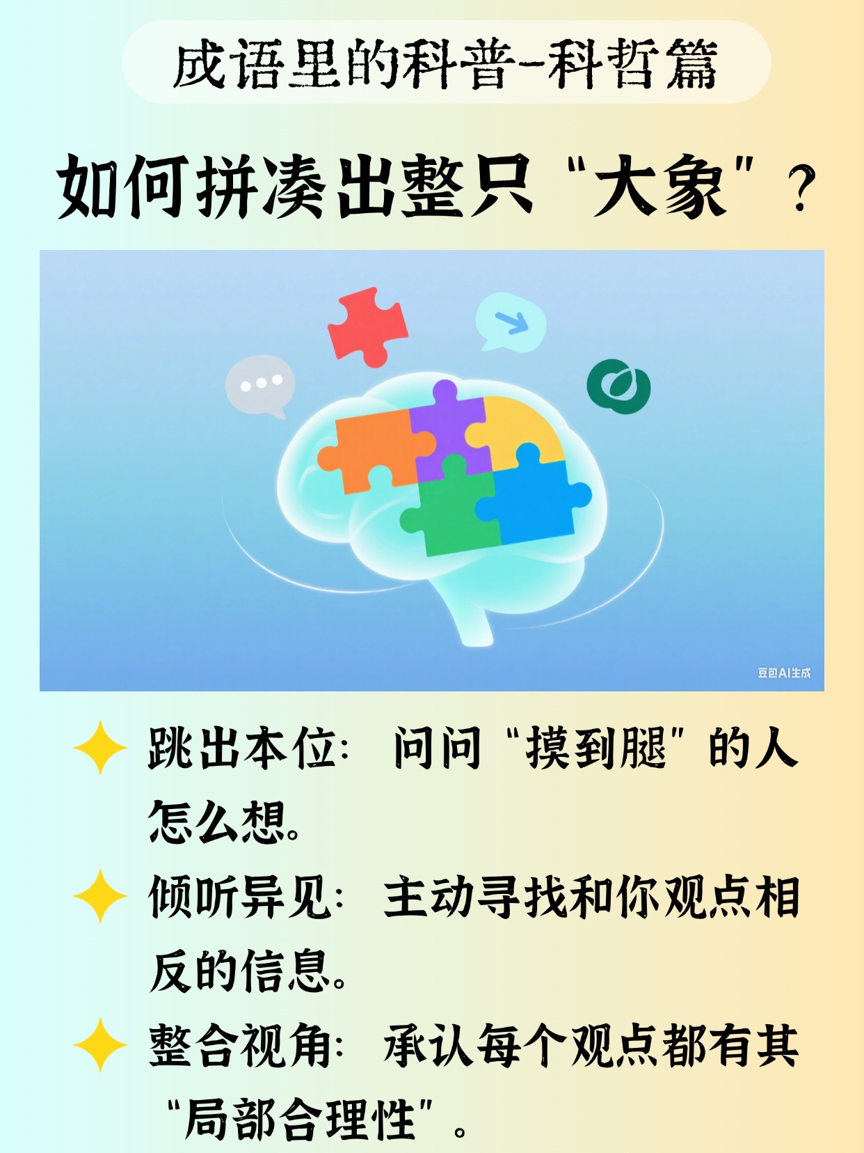 🏷️#趣味知识科普 #我的旷野时分 #成语里的科普哲思 #盲人摸象 #全局观 #量子力学 #认知偏见 #格局