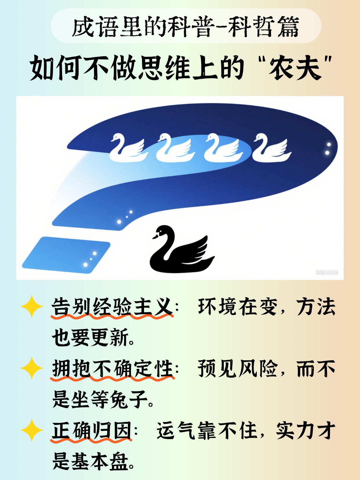 🏷️#趣味知识科普 #我的旷野时分 #成语里的科普哲思 #守株待兔 #黑天鹅 #归纳法 #思维升级 #认知陷阱