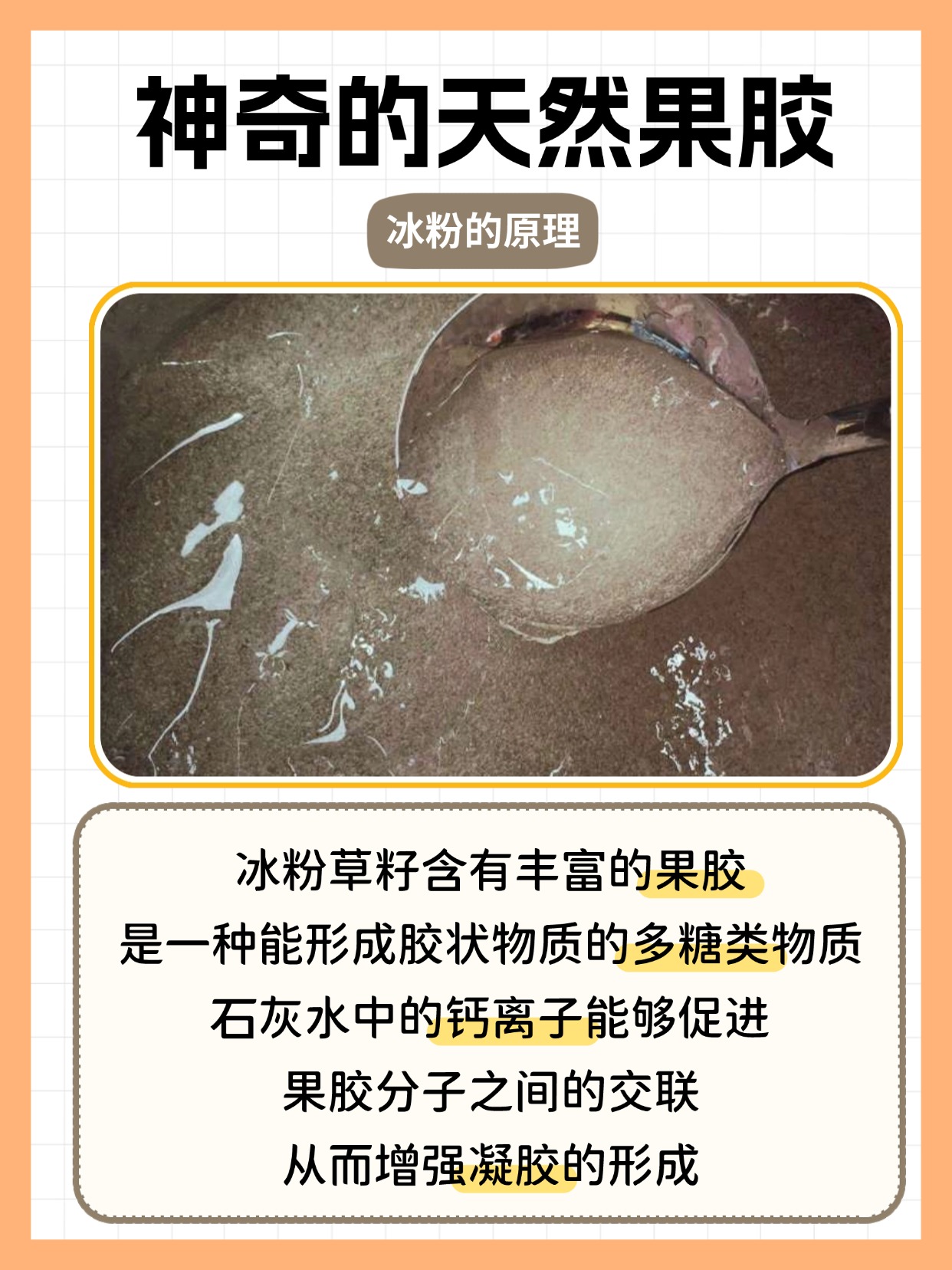 🧪为啥要加石灰水?原来冰粉里的多糖分子像钢筋一样交联,形成网络框架,锁住水分子。
