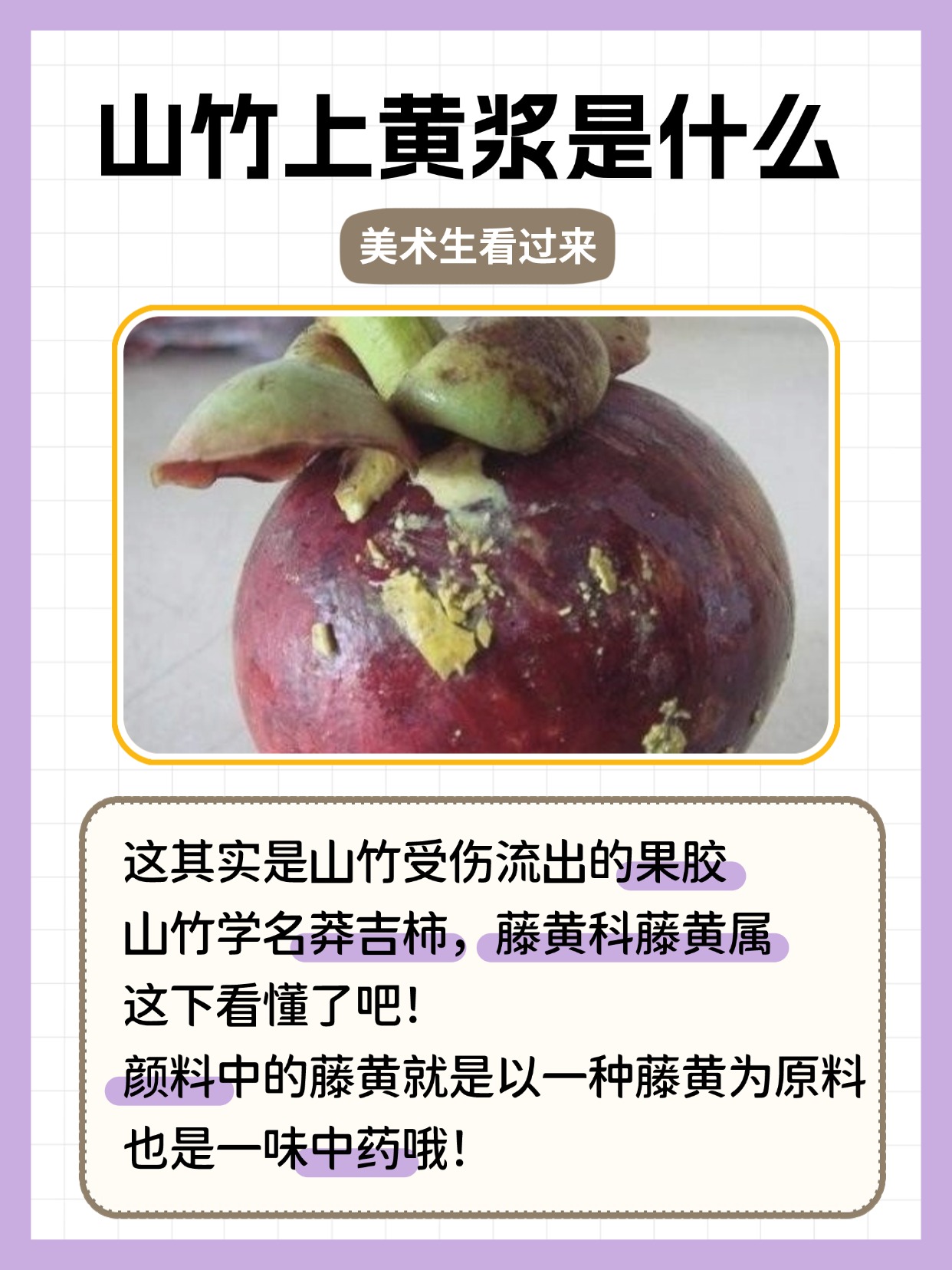 ▫️颜料藤黄+中药藤黄=同源!果皮黄色树脂可食用,但果肉发黄会发苦要挖掉哦