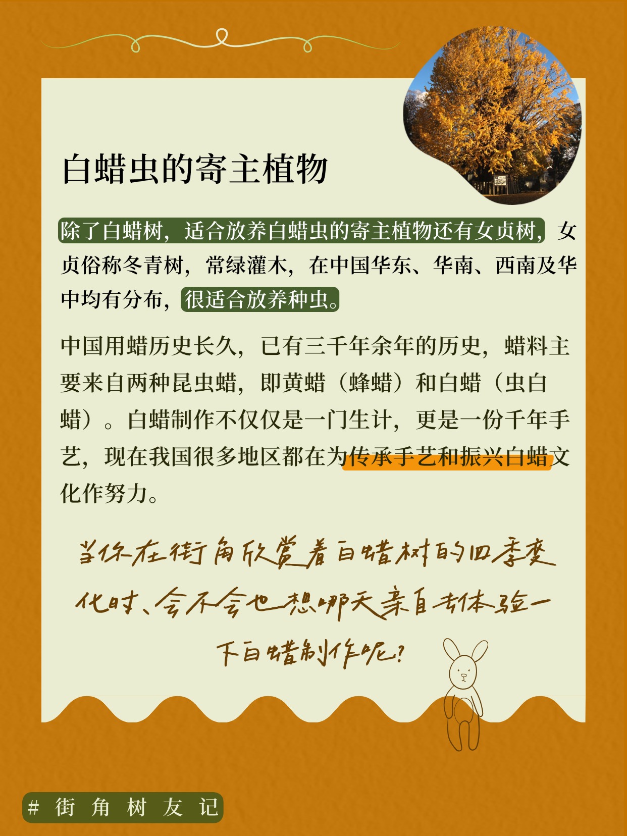 当你在街角欣赏着白蜡树的四季变化时,会不会也想哪天亲自去体验一下白蜡制作呢?