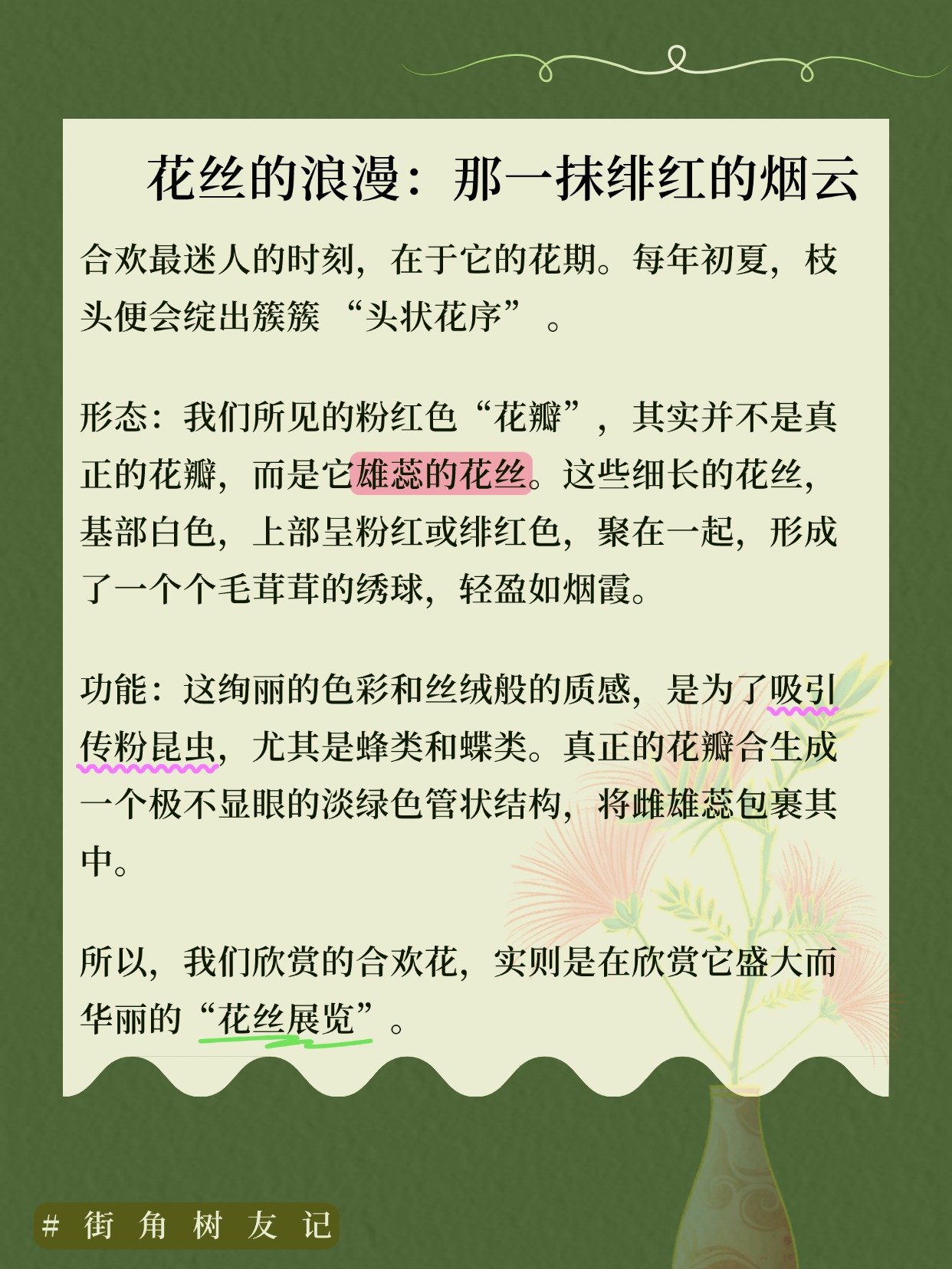 合欢最迷人的时刻,在于它的花期。每年初夏,枝头便会绽出簇簇 “头状花序” 。
