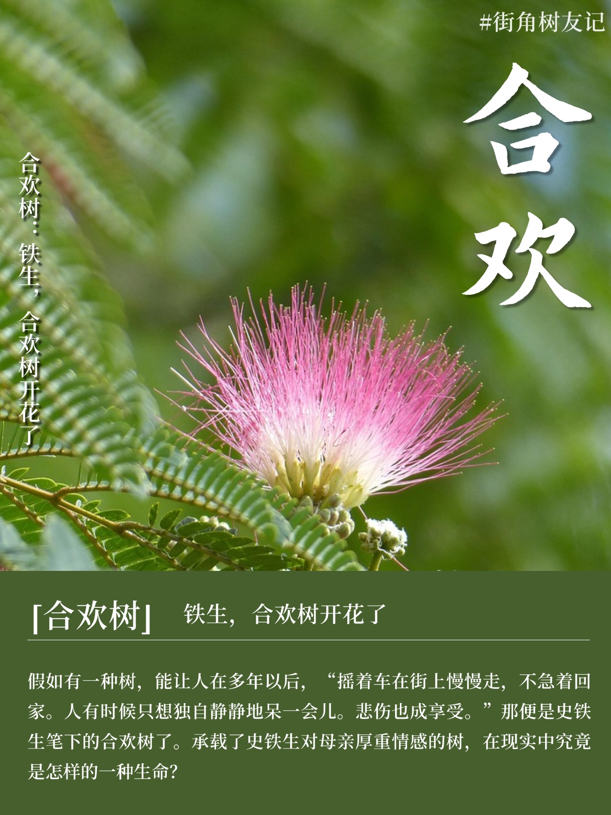 如今,当我们走在夏日的街头,看见那一片片如绯红烟云般的树冠时,或许会想起史铁生,想起“有一天那个孩子长大了,会想到童年的事,会想起那些晃动的树影儿,会想起他自己的妈妈,他会跑去看看那棵树。但他不会知道那棵树是谁种的,是怎么种的”。